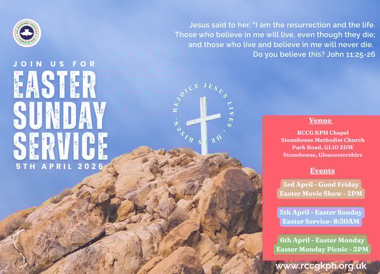 Welcome to RCCG Kingdom Powerhouse, a parish of The Redeemed Christian Church of God located in Stonehouse Gloucestershire. RCCG KPH is a place of worship and transformation - Join us for weekly worship services, powerful prayer sessions, and engaging Bible teachings.